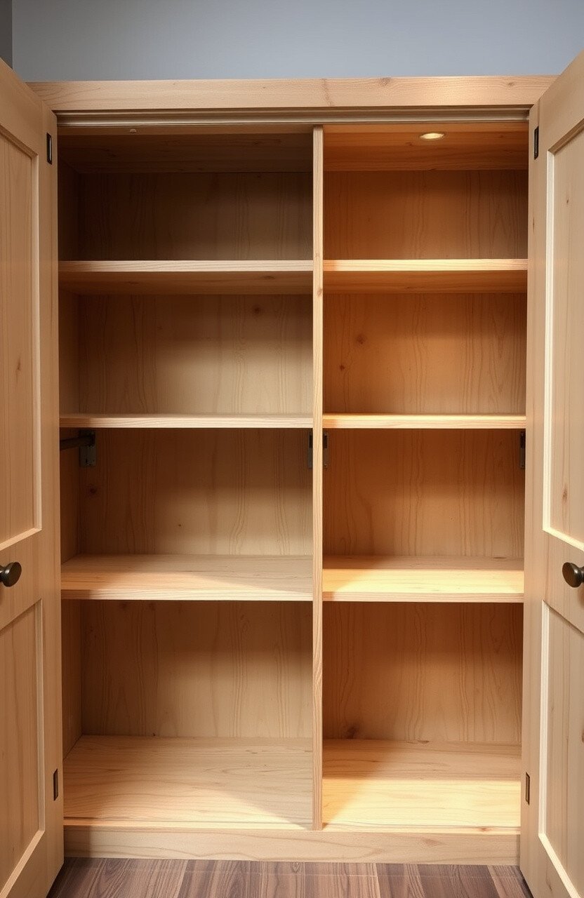 Imagine shelves that are cleverly concealed behind closet doors. This design is perfect for those who prefer a clean, uncluttered look.