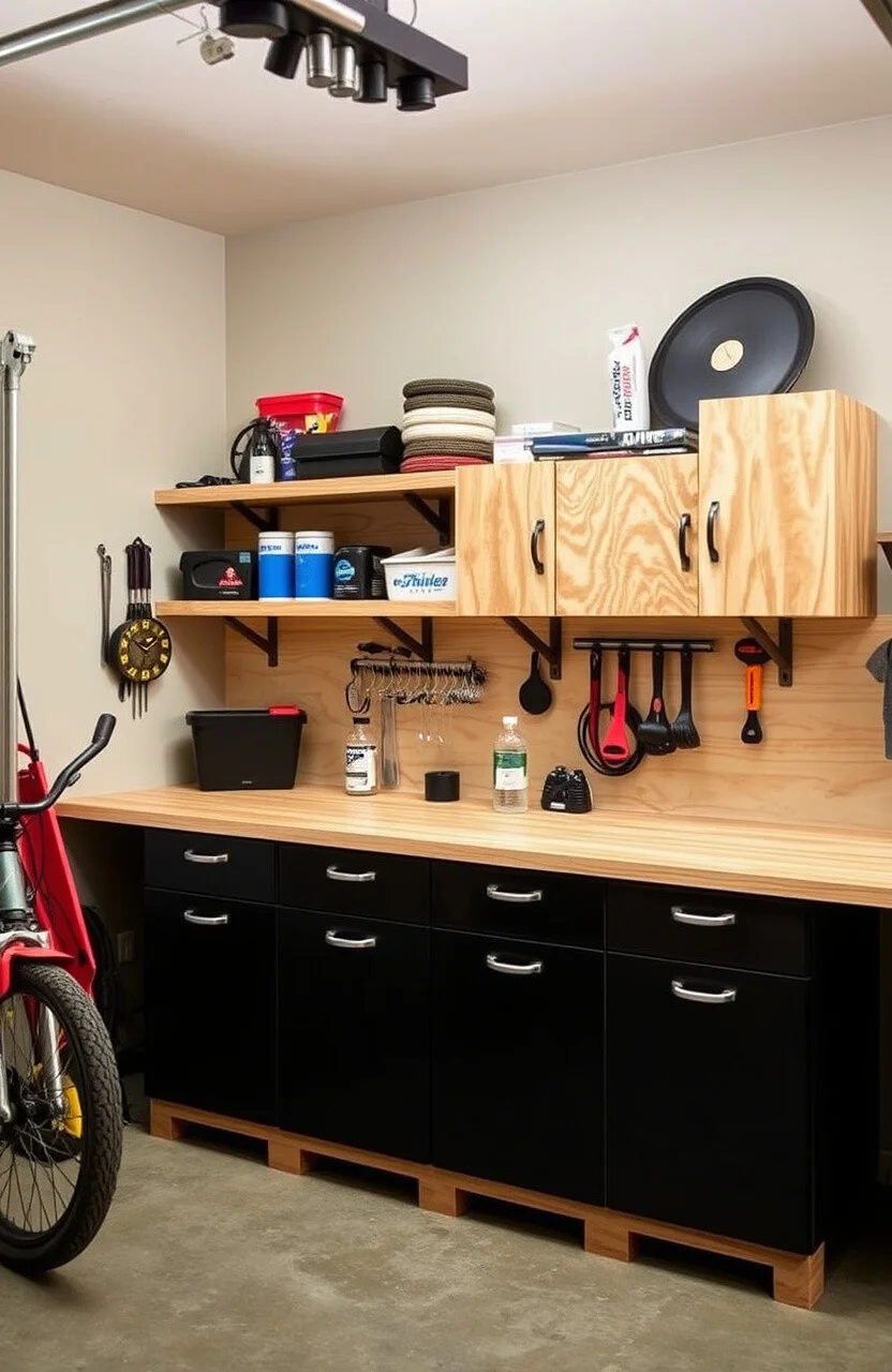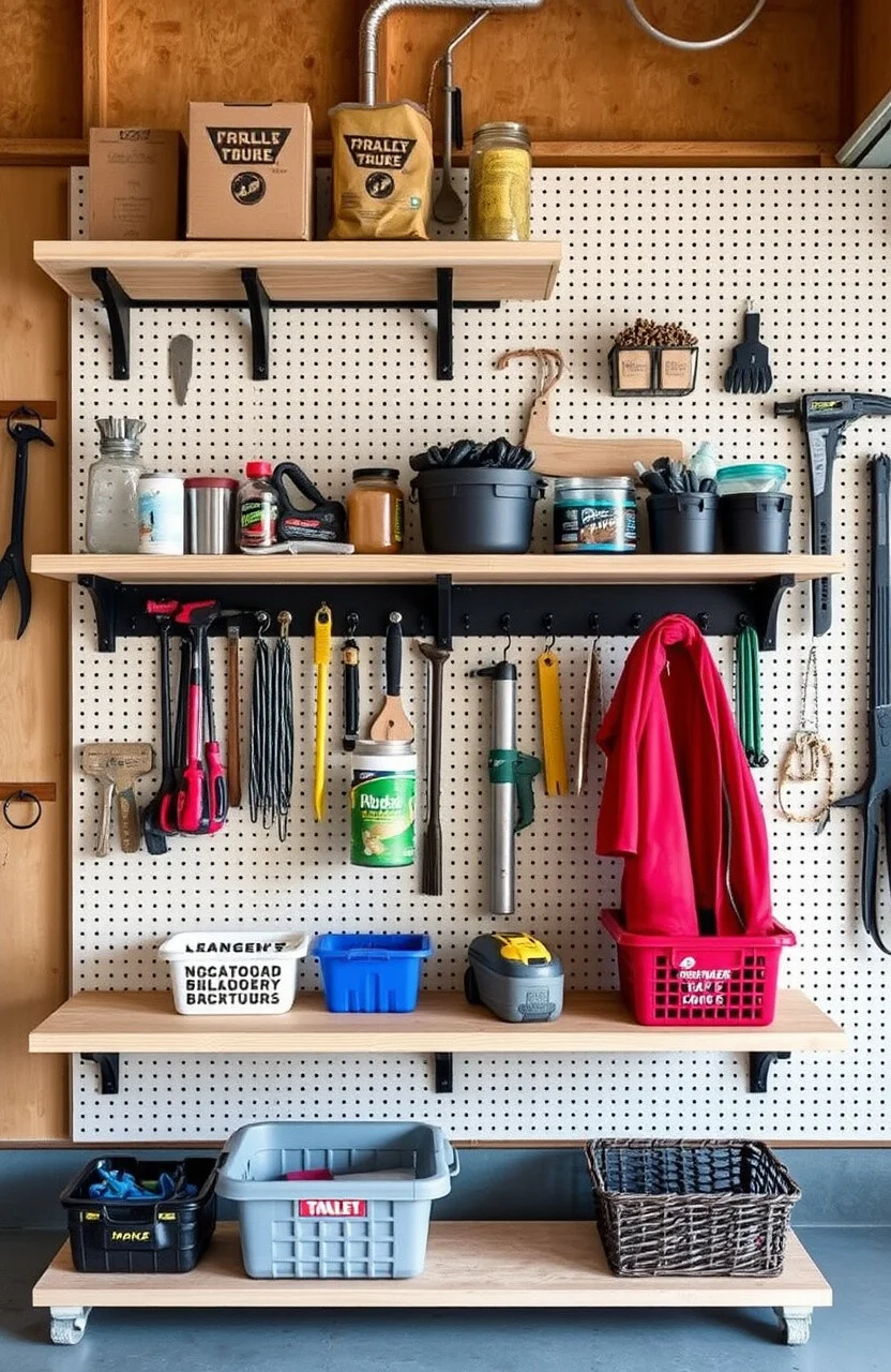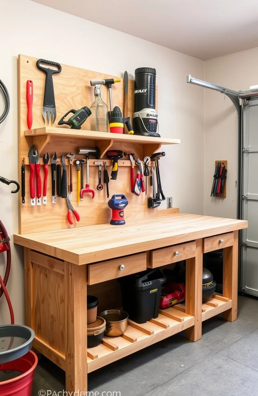 Why not mix a pegboard with your plywood shelves for the ultimate organization station? It’s a match made in garage heaven!