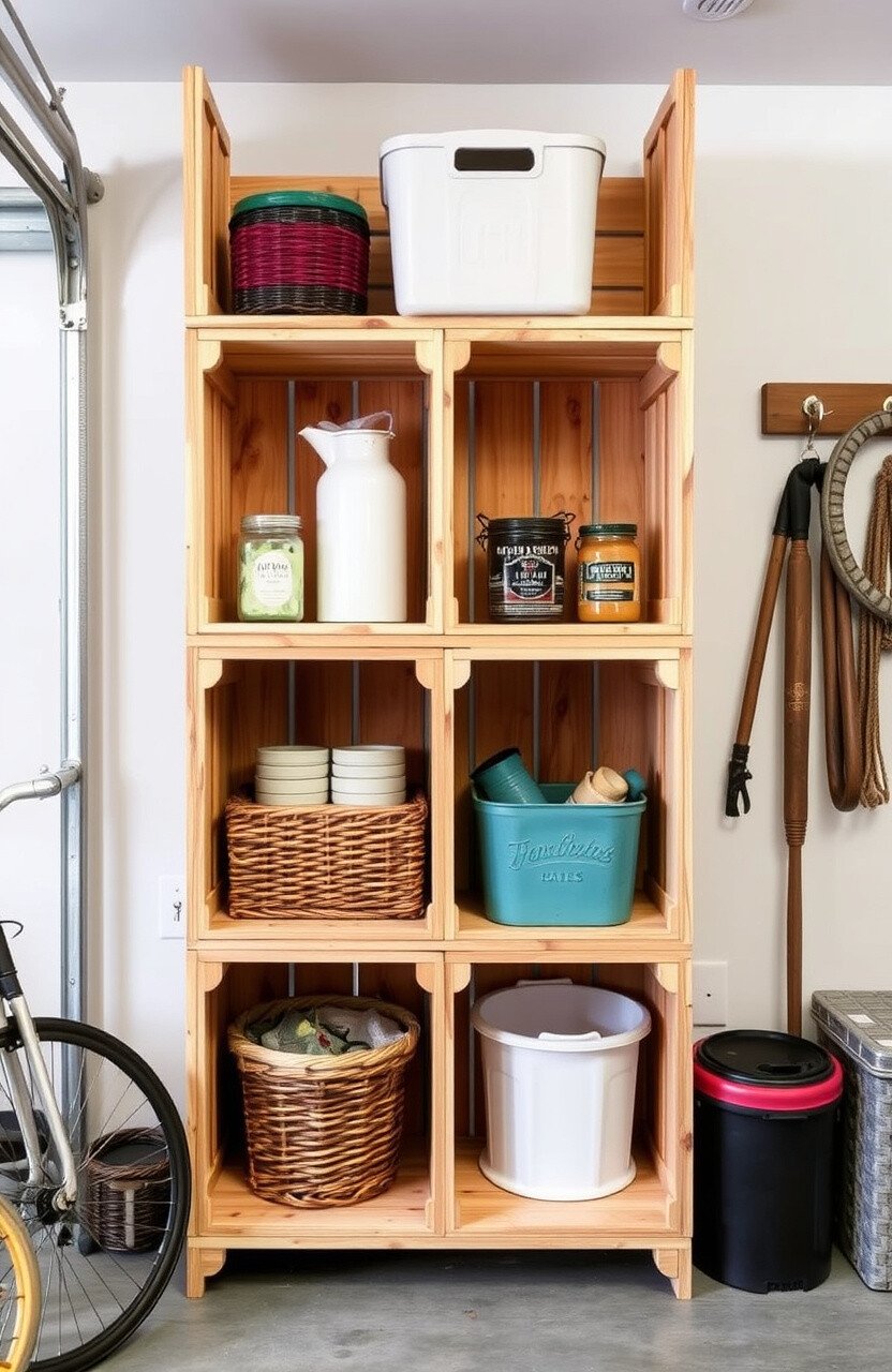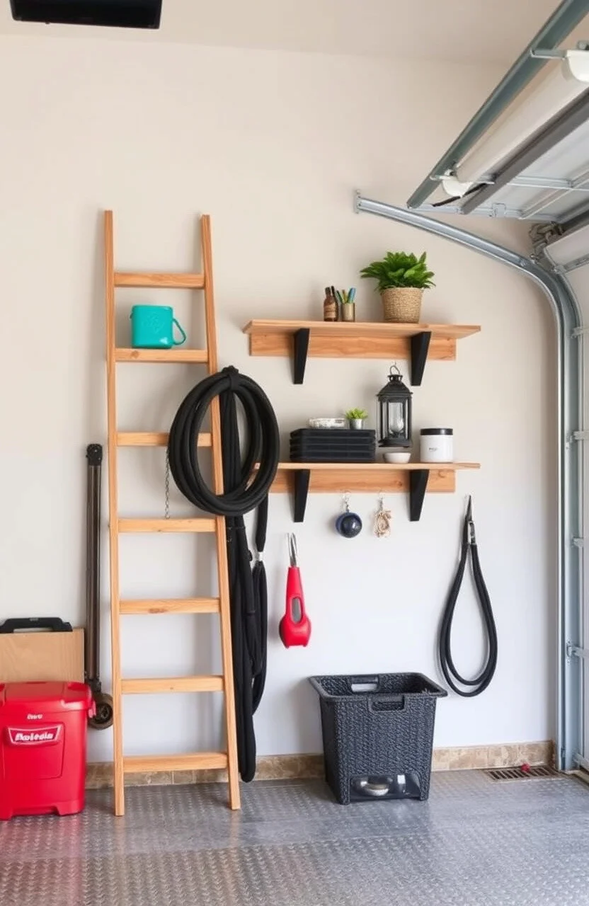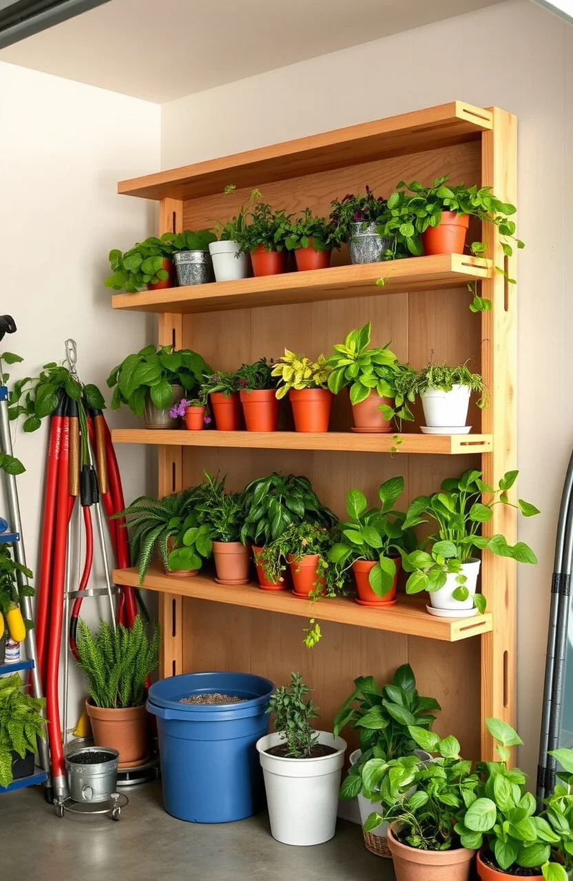 Bring some greenery into your garage with a vertical garden shelf. It’s a unique way to combine storage and nature.
