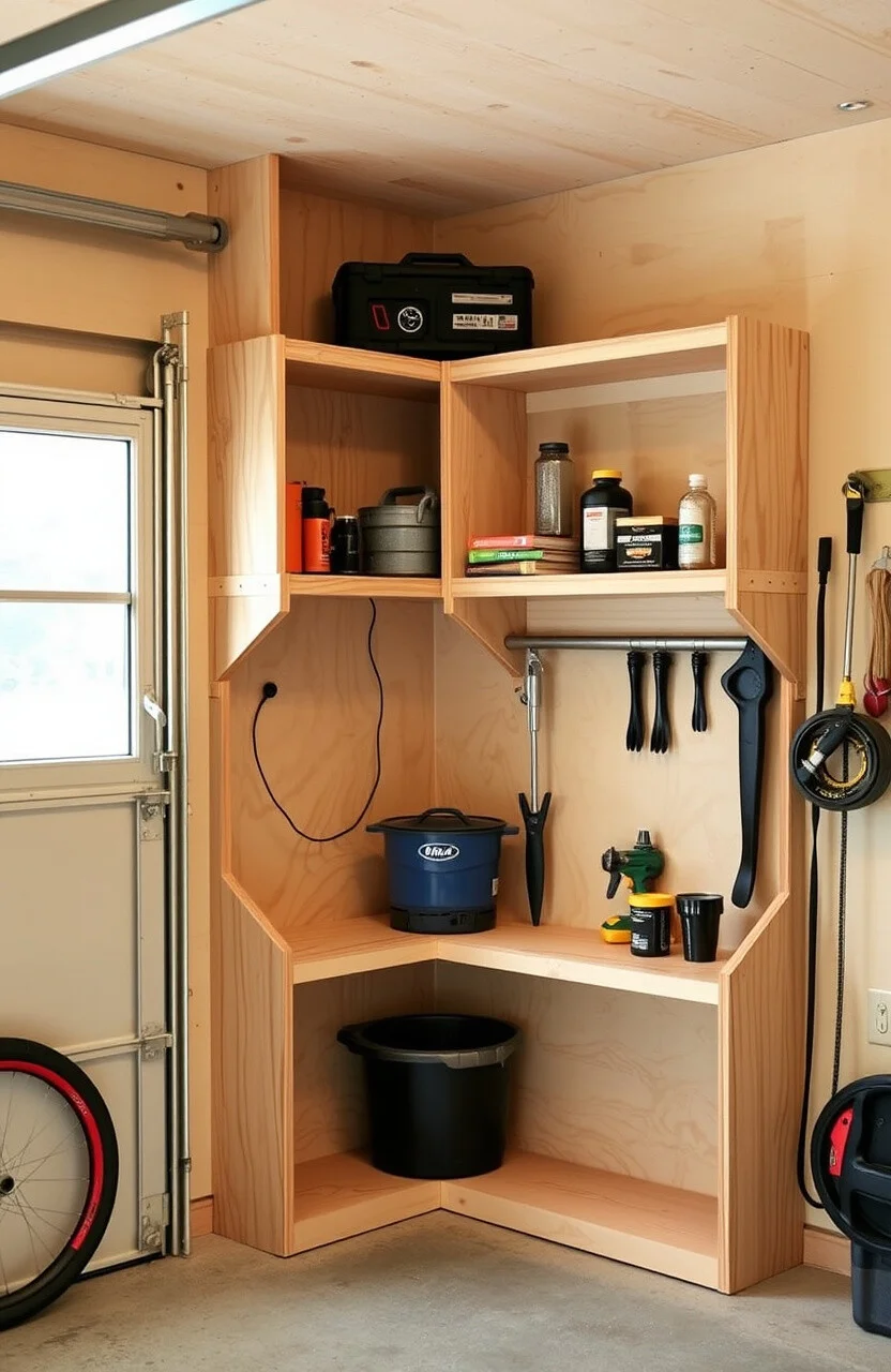 Sometimes, the most unexpected places hold the greatest potential for creativity. Your garage can be more than just a storage space with these charming plywood built shelves.