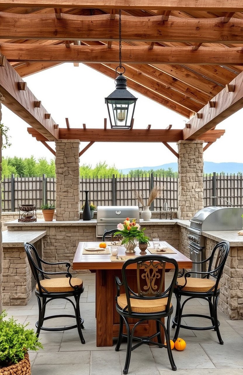 Imagine stepping into a backyard oasis where rustic charm meets modern comfort. With stone textures and pergola covers, these outdoor kitchens become a cozy retreat.