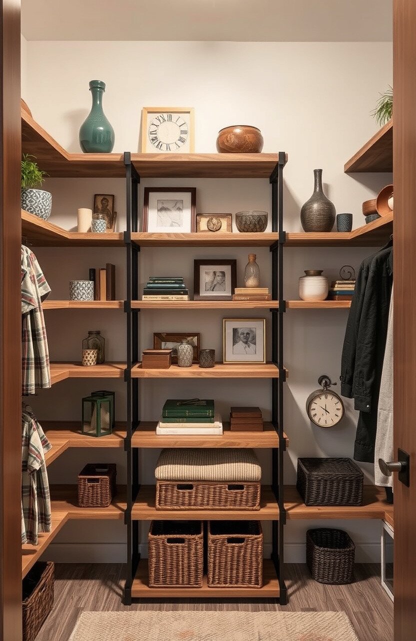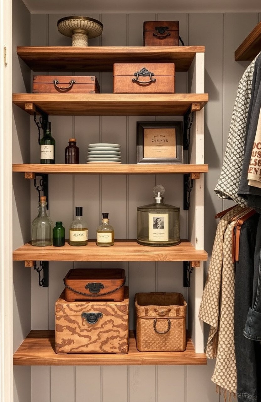 Add a bit of love to your closet with rustic romance shelves. These shelves use soft, distressed wood and gentle curves to create a romantic and soothing ambiance. They’re perfect for a closet that feels like a personal retreat.
