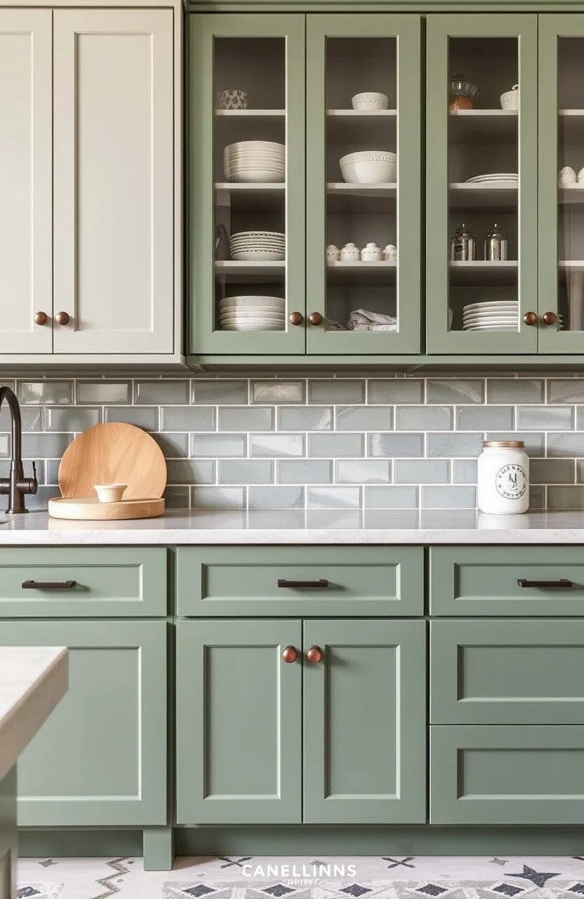 17. Sage Cabinets with Glass Fronts
