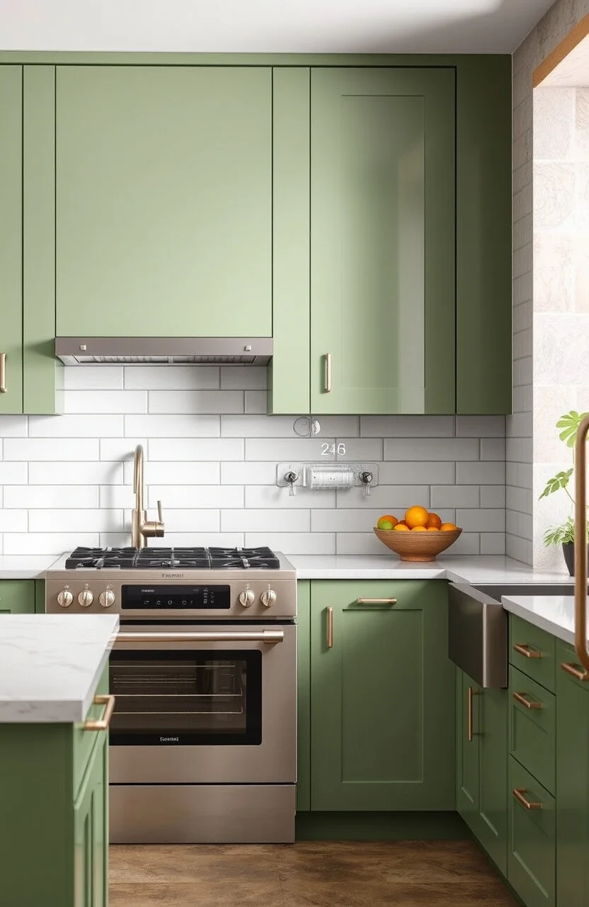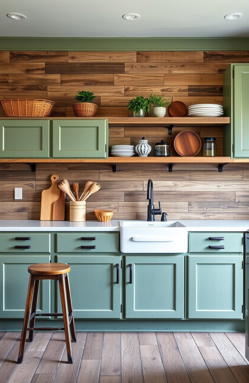 Imagine sage green cabinets with a rustic finish. The slightly distressed look gives off a welcoming vibe. It’s like your kitchen has a story to tell.