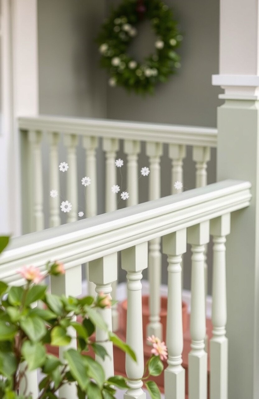 Stencils can add a touch of whimsy to your railings. Imagine tiny floral patterns peeking through sage paint.