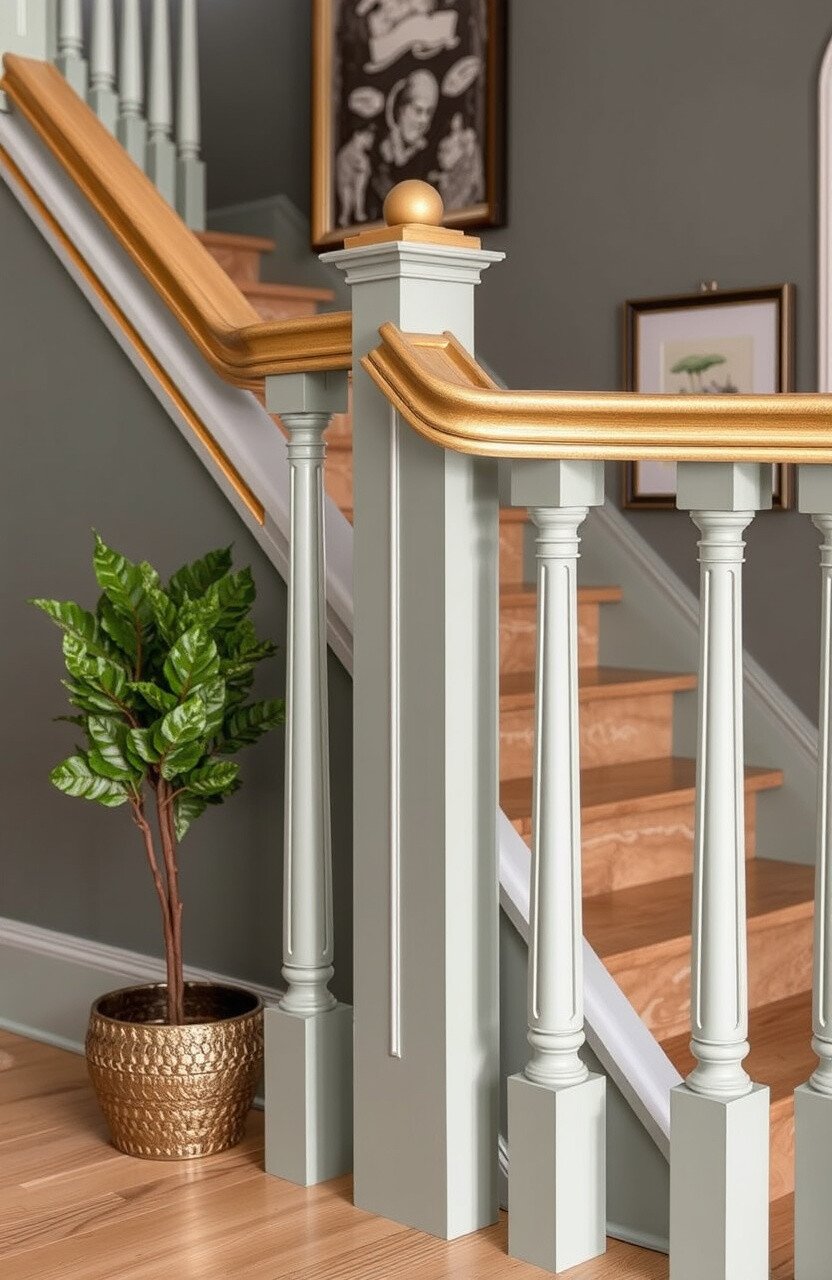 Gold and sage—what a luxurious duo! Add gold highlights to sage railings for a touch of glamour.