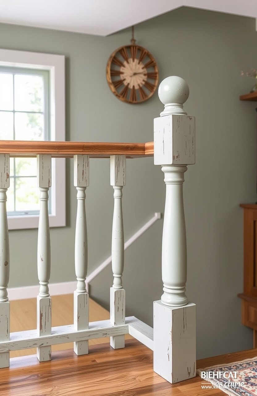 Picture this: a traditional wooden railing, now painted in soft sage. This classic look is timeless, perfect for those who love a bit of nostalgia.