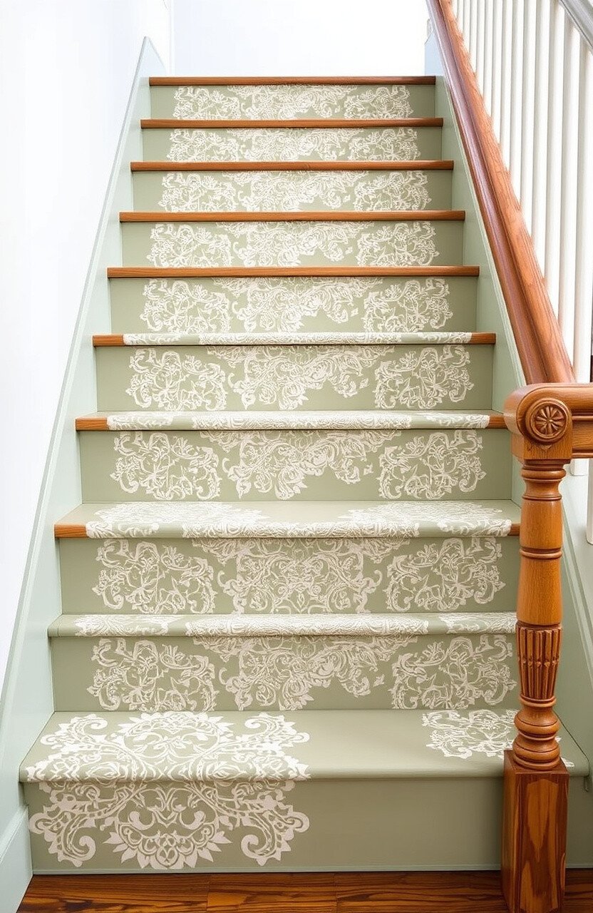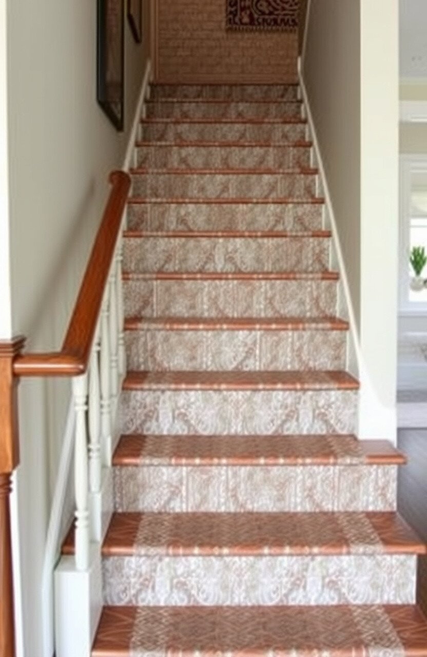 Lace patterns add texture and a touch of romance to your staircase, enhancing the boho vibe.