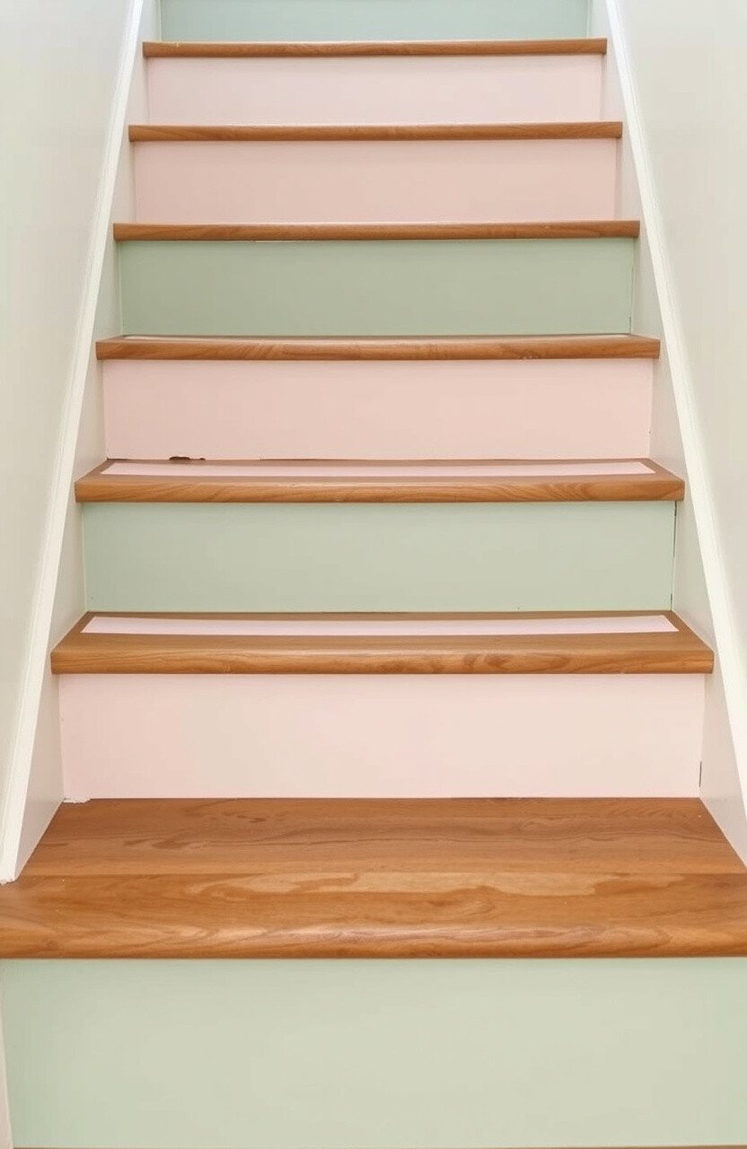 Combine sage with pastels for a soft, dreamy effect. You can alternate between pastel colors and sage on each step for a playful look.