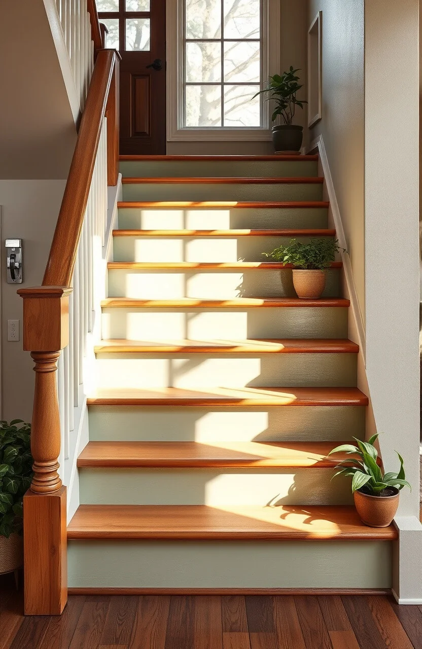 Imagine stepping into a farmhouse where each stair tread whispers stories of rustic charm and elegance. Sage green, with its calming nature, can transform these steps into a journey of beauty and warmth.