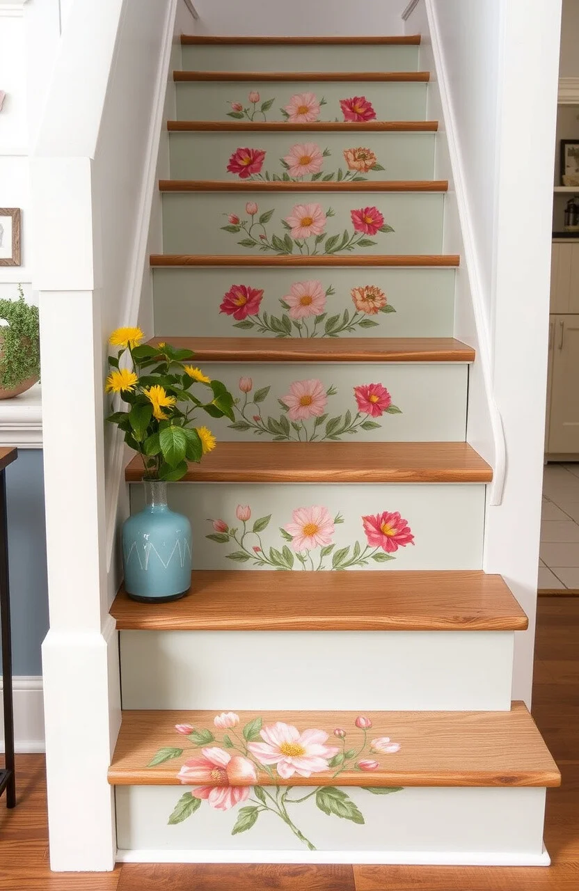 This style is perfect for adding a touch of femininity and whimsy. Floral accents make the stairs look lively and inviting.
