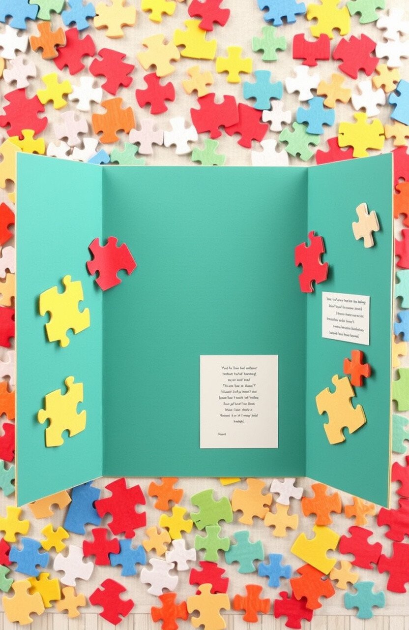 Cut out puzzle piece shapes from colored paper to decorate your board. It’s a clever and affordable option.