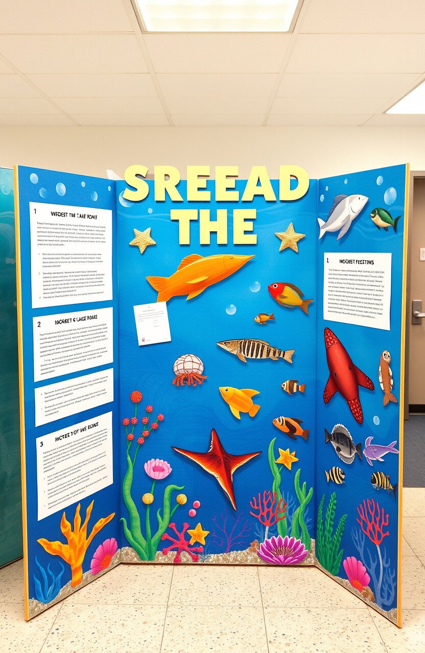An under-the-sea theme can make your board look like an ocean adventure. With blues, greens, and sea creatures, it’s like diving into the deep.