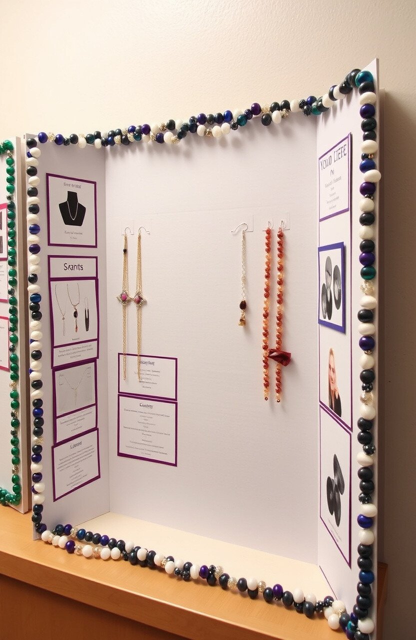 String beads along the edges of your board for a border that sparkles and shines. This can bring a sense of elegance and sophistication to your project. Ideal for projects about jewelry or craftsmanship.