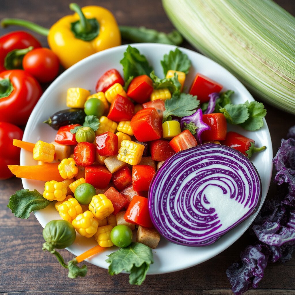 Try making a salad with peppers, corn, and purple cabbage. It’s healthy and looks amazing.