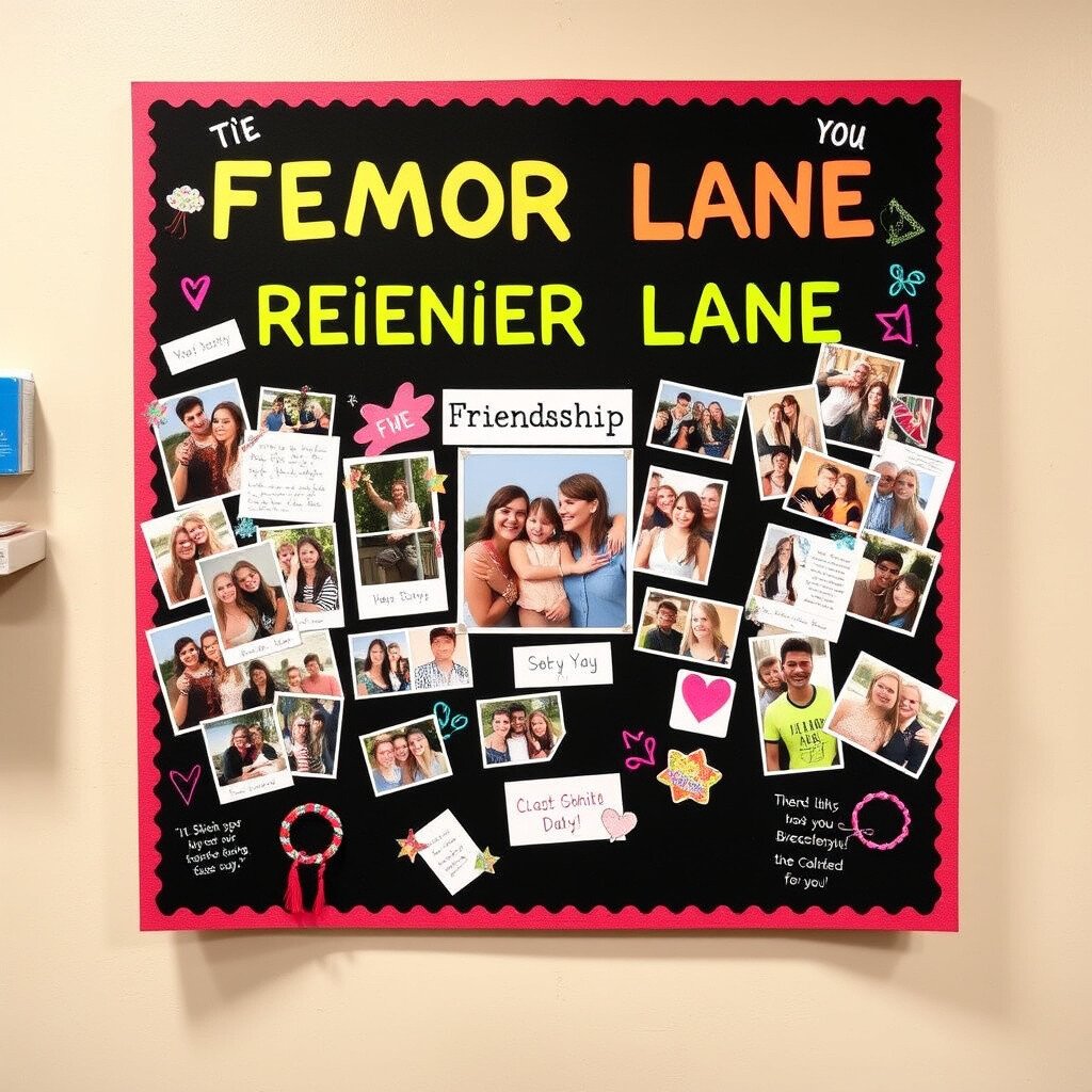Celebrate friendships with a board filled with group photos, friendship bracelets, and shared memories.