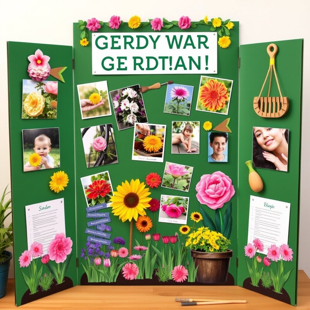 Use floral motifs and garden tools for decoration. Add plant labels or garden tips for depth.