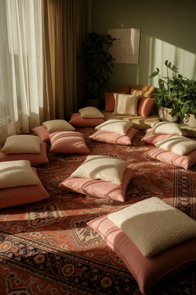 Floor cushions can turn any space into a cozy lounge. Imagine plopping down on soft, oversized pillows while sipping tea!