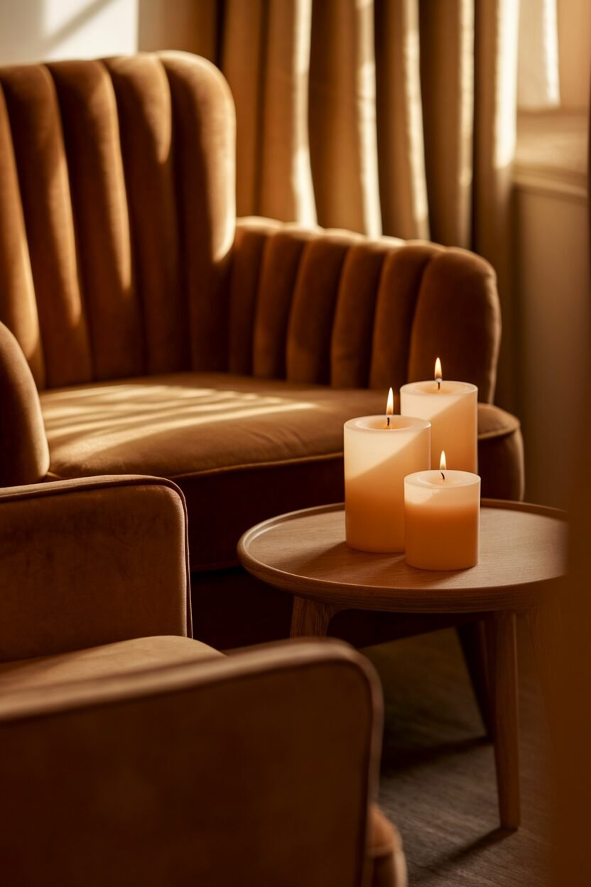 A corner filled with fragrant candles can bring warmth to your lounge. Picture the soft flicker of candlelight and lovely scents wafting through the air!