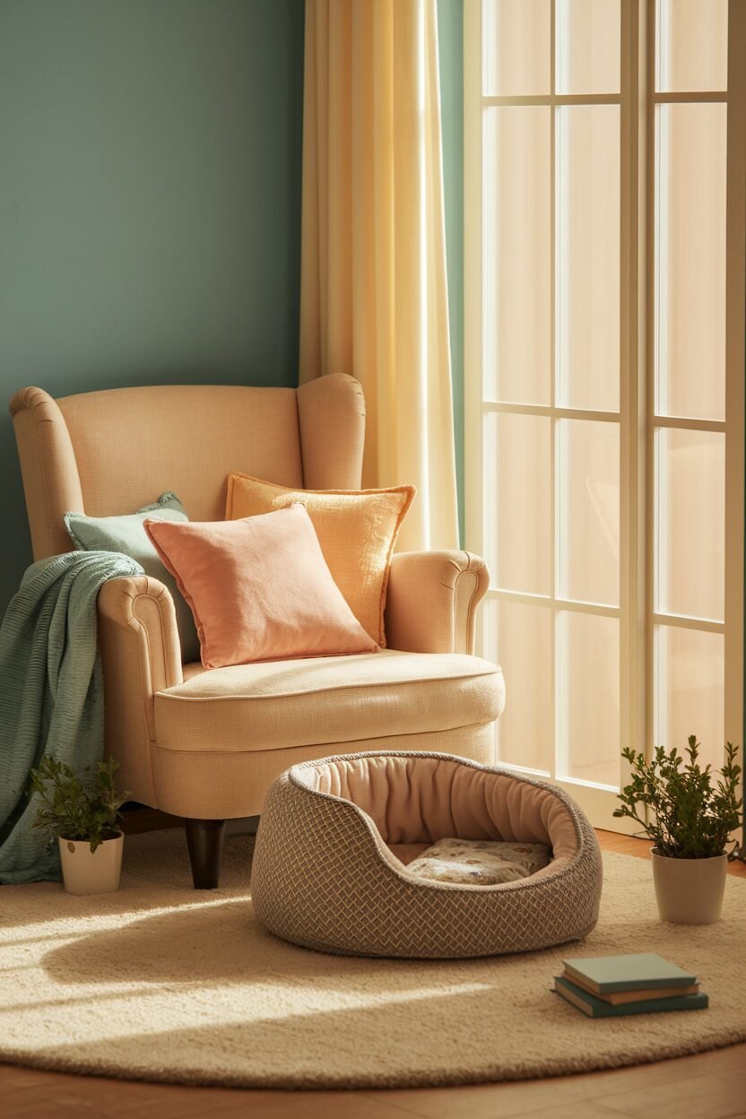 A cozy corner for your pet can make your lounge feel even more welcoming. Imagine your furry friend snuggled up in their own space!