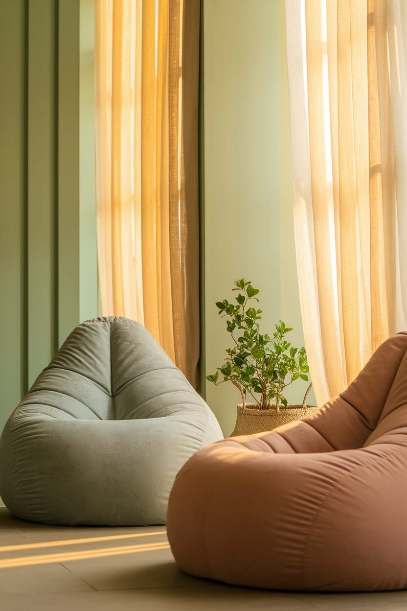 Bean bag chairs can add a fun and casual vibe to your lounge. Imagine sinking into a soft, squishy chair while you watch a movie!
