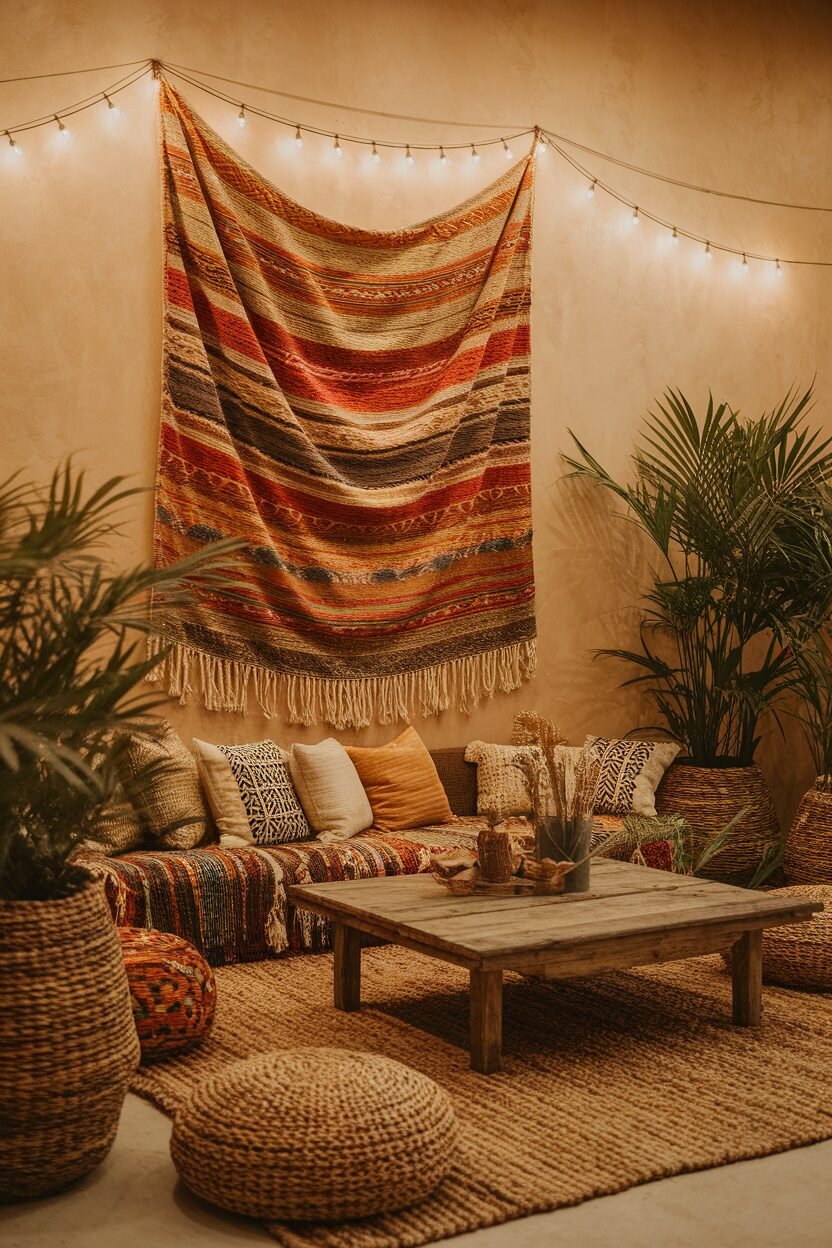 Bohemian decor can create a relaxed and free-spirited atmosphere in your lounge. Think colorful fabrics, eclectic patterns, and lots of textures!