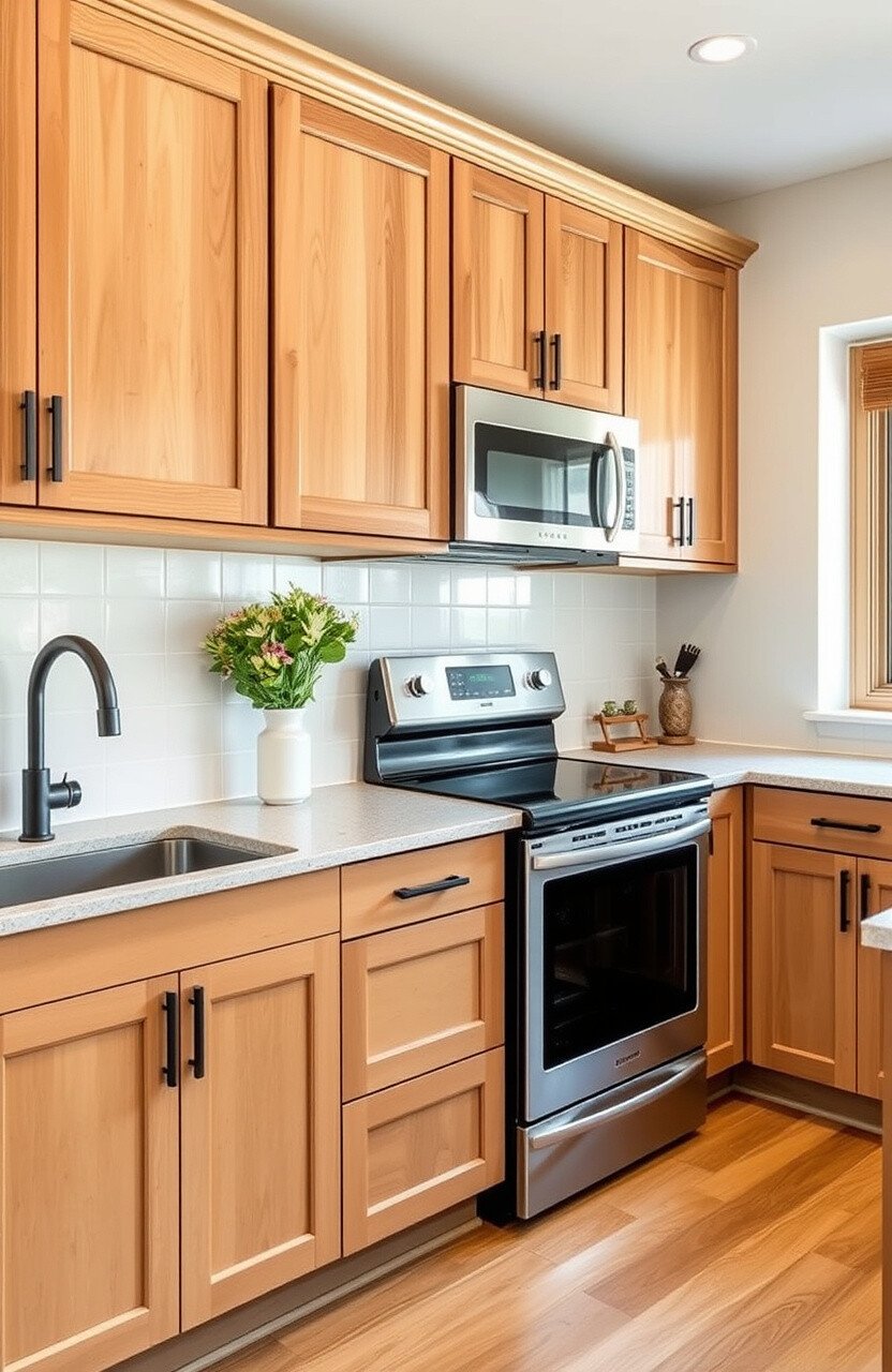 Embrace the beauty of natural wood Shaker cabinets. They bring warmth and texture to your kitchen, making it feel cozy and inviting.