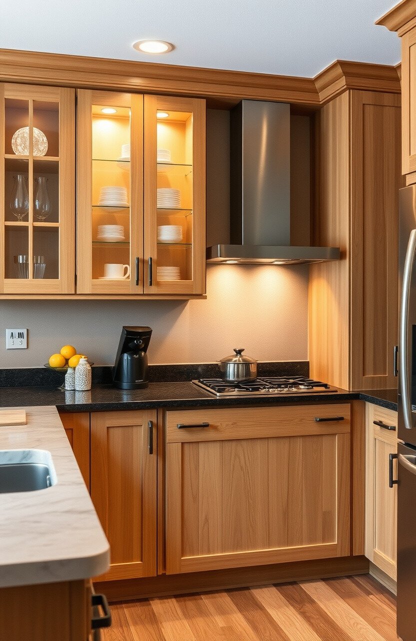 Consider under-cabinet lighting for a soft glow or inside lighting for a dramatic effect. This feature is perfect for showcasing your kitchen’s best features.