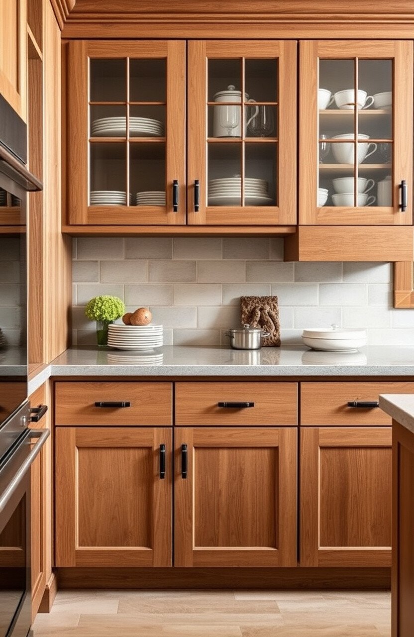 Add some flair to your Shaker cabinets with glass front doors. They allow you to display beautiful dishware while keeping the clean lines intact.