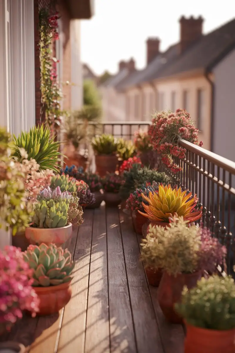 Create a colorful succulent garden on your balcony for a low-maintenance green space. Succulents are perfect for small areas and come in many vibrant colors!
