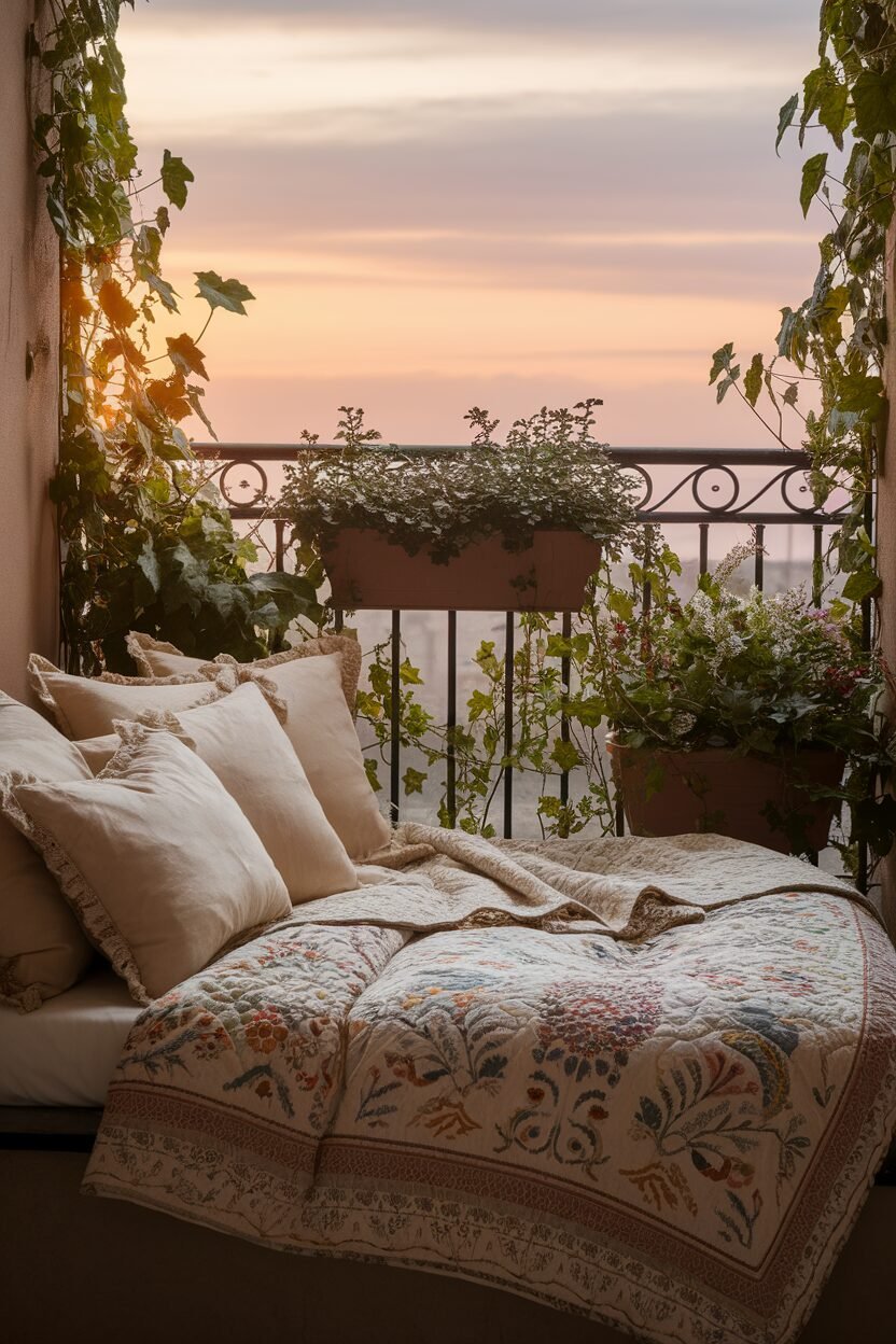 Creating a cozy outdoor bed can turn your balcony into a dreamy escape! It’s a perfect spot for naps or enjoying a good book under the sun.