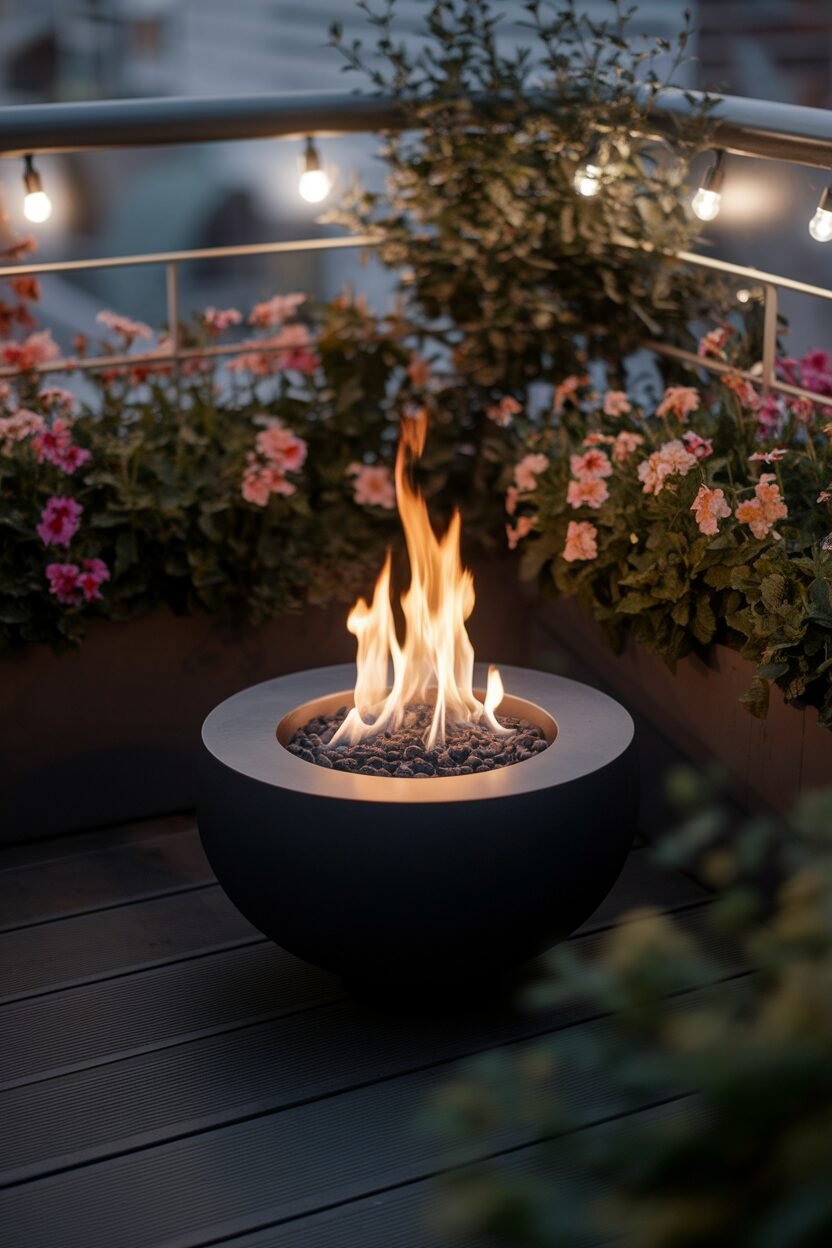 A small fire pit can add warmth and a cozy ambiance to your balcony. It’s a fantastic way to enjoy cool evenings while roasting marshmallows.