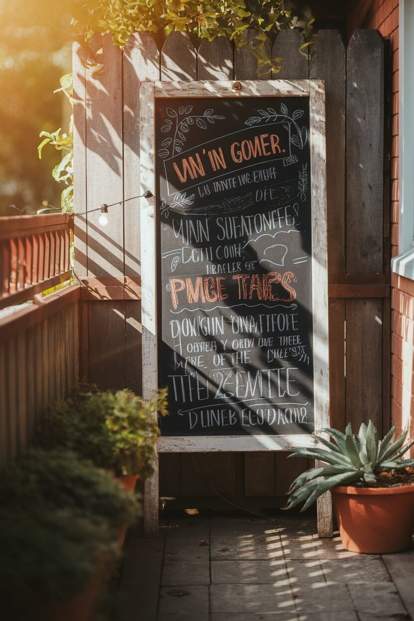 An outdoor chalkboard can be a fun and interactive addition to your balcony! It’s perfect for jotting down reminders, quotes, or even doodles.