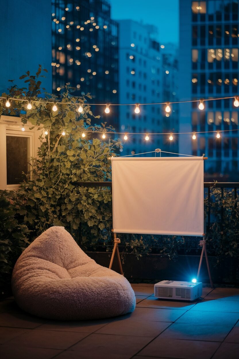 Imagine hosting movie nights right on your balcony! With a portable projector and a white sheet, you can create a mini outdoor cinema.