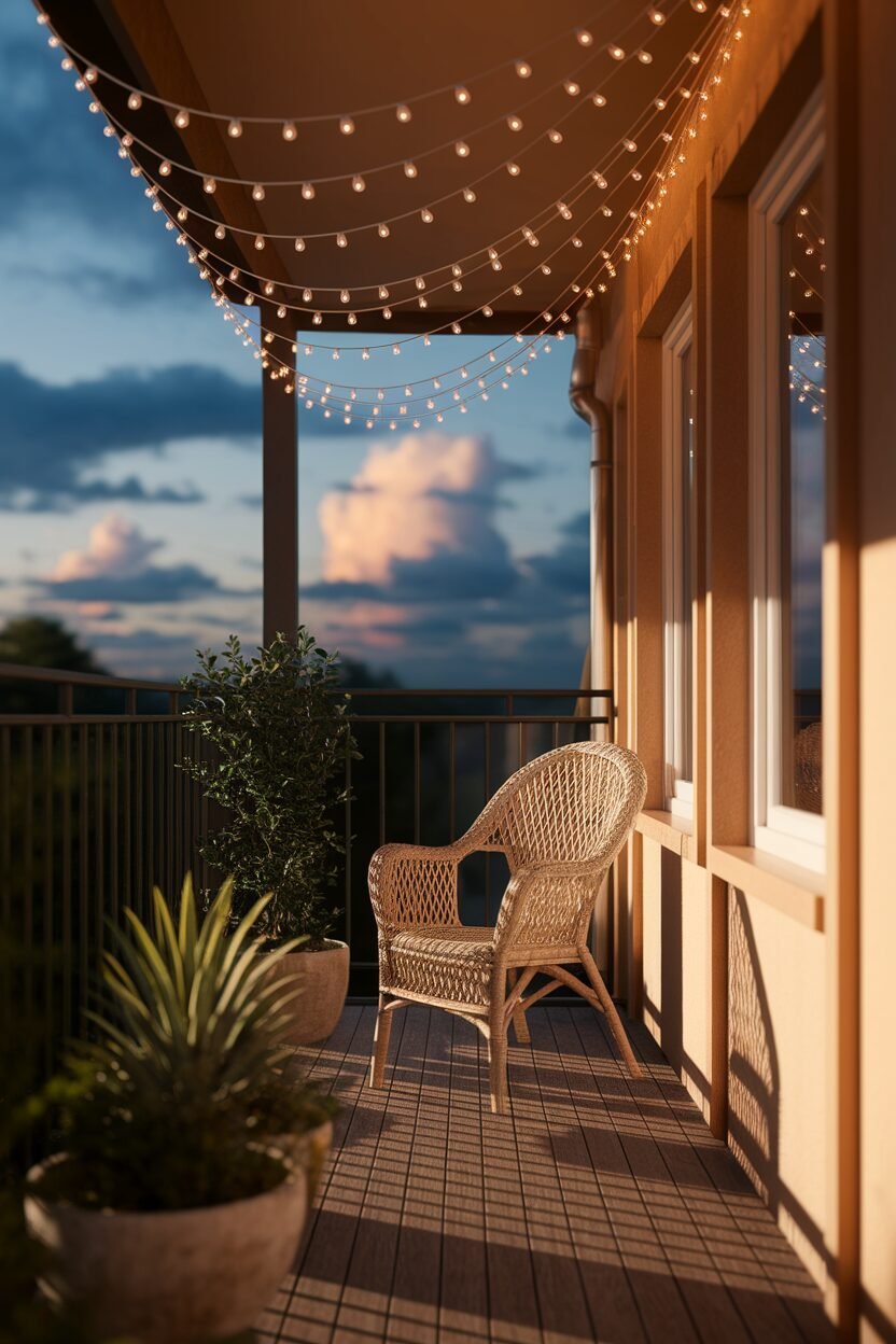 Twinkling lights can turn your balcony into a dreamy retreat! String lights add warmth and charm, making evenings on your balcony extra special.