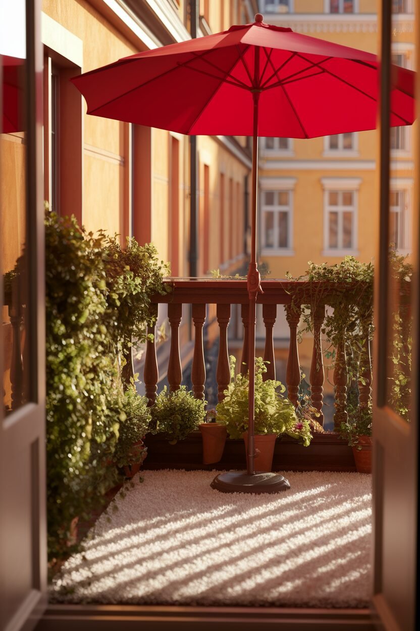 Keeping your balcony cool and shaded is essential for enjoying those sunny days! A stylish umbrella or sunshade can provide relief from the heat.