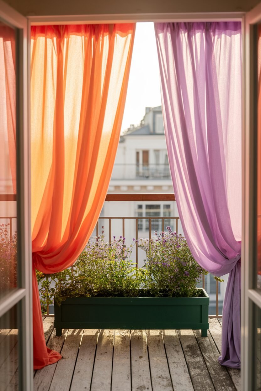 Adding colorful outdoor curtains can instantly change the vibe of your balcony! They provide privacy while adding a splash of color and style.