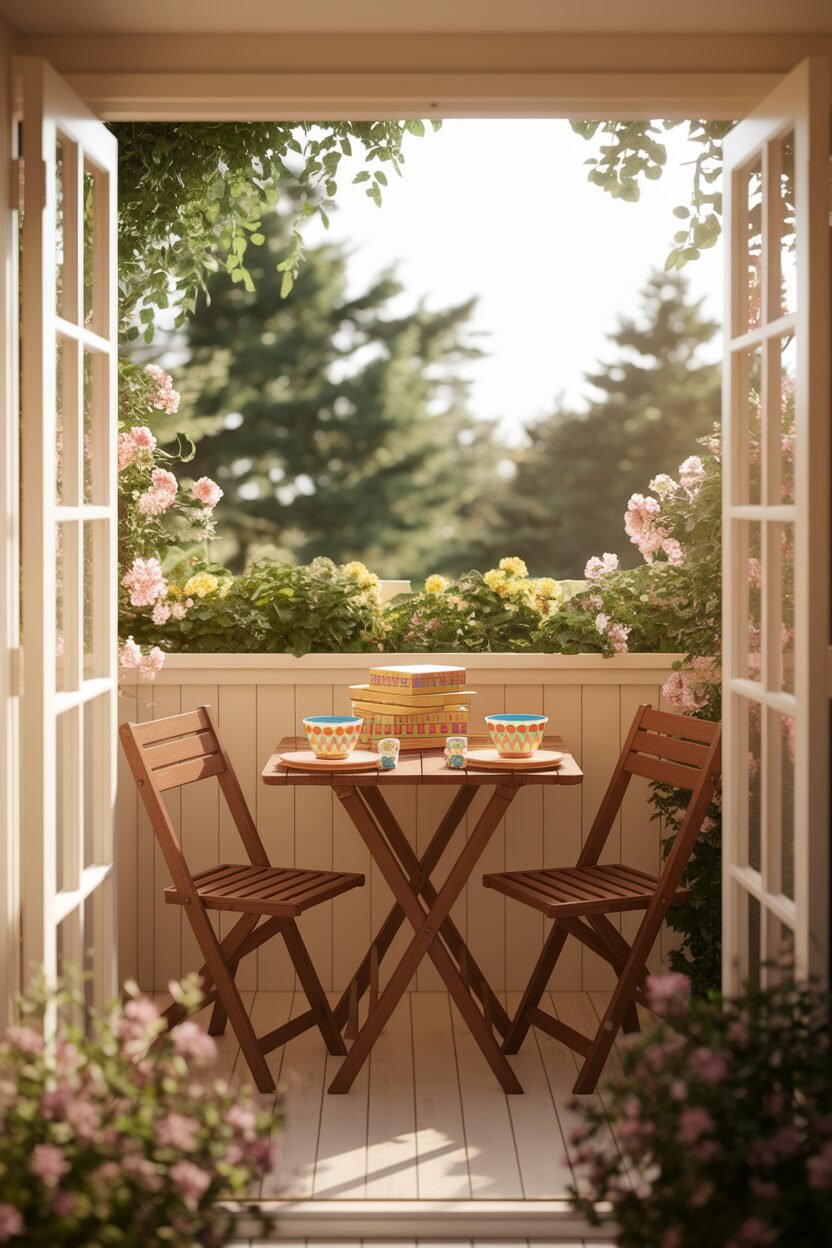 Picture yourself enjoying breakfast or evening drinks at a charming little bistro set! A small table with two chairs can instantly turn your balcony into a cozy dining spot.