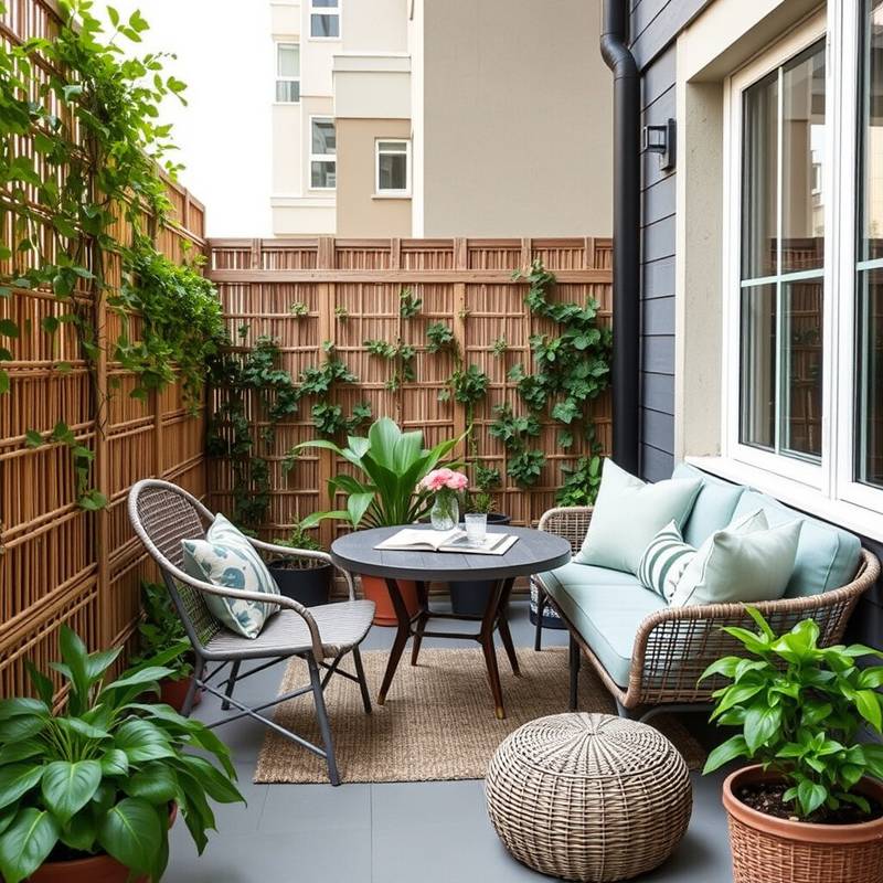 Add privacy screens to create a serene retreat. These can be made from bamboo, fabric, or trellis with climbing plants.