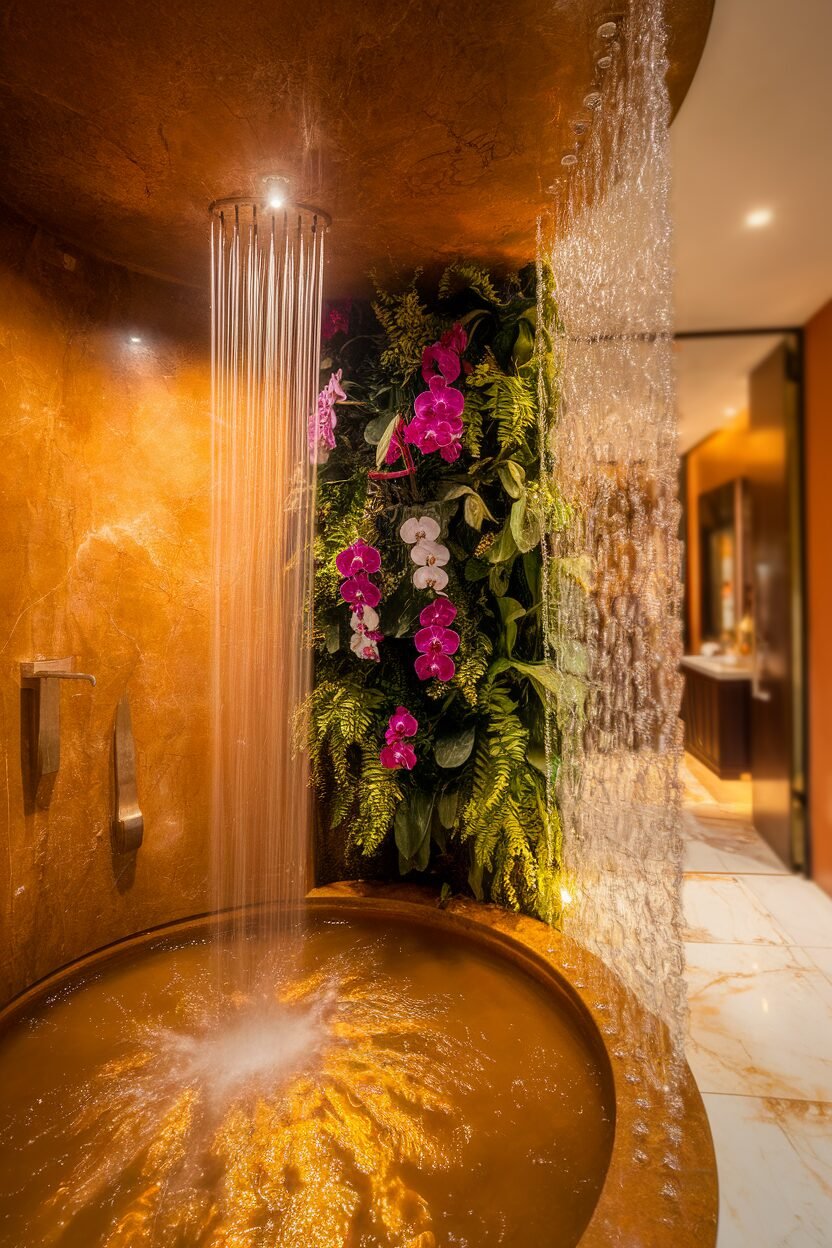 Adding features like built-in shelves for shampoo and soap can keep your shower organized and stylish. A rainfall showerhead can also give you that luxurious spa feel.