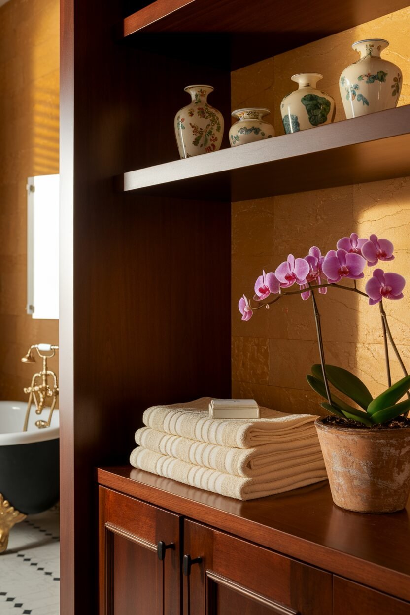 This style brings warmth and character, making your bathroom feel unique and inviting. Mixing old and new pieces adds an eclectic vibe that is simply charming.