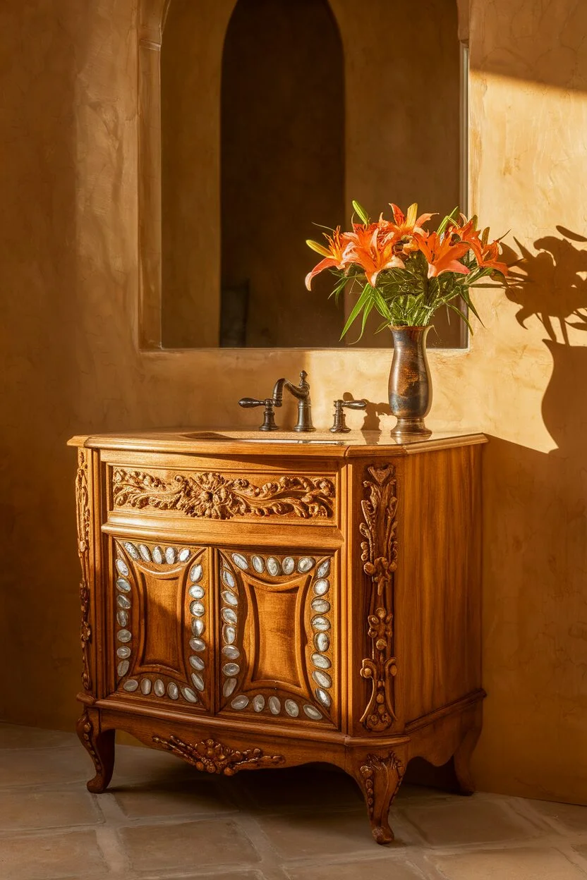 This vanity is a true treasure for lovers of vintage decor. With its intricate details and classic design, it adds a touch of elegance to any small bathroom.