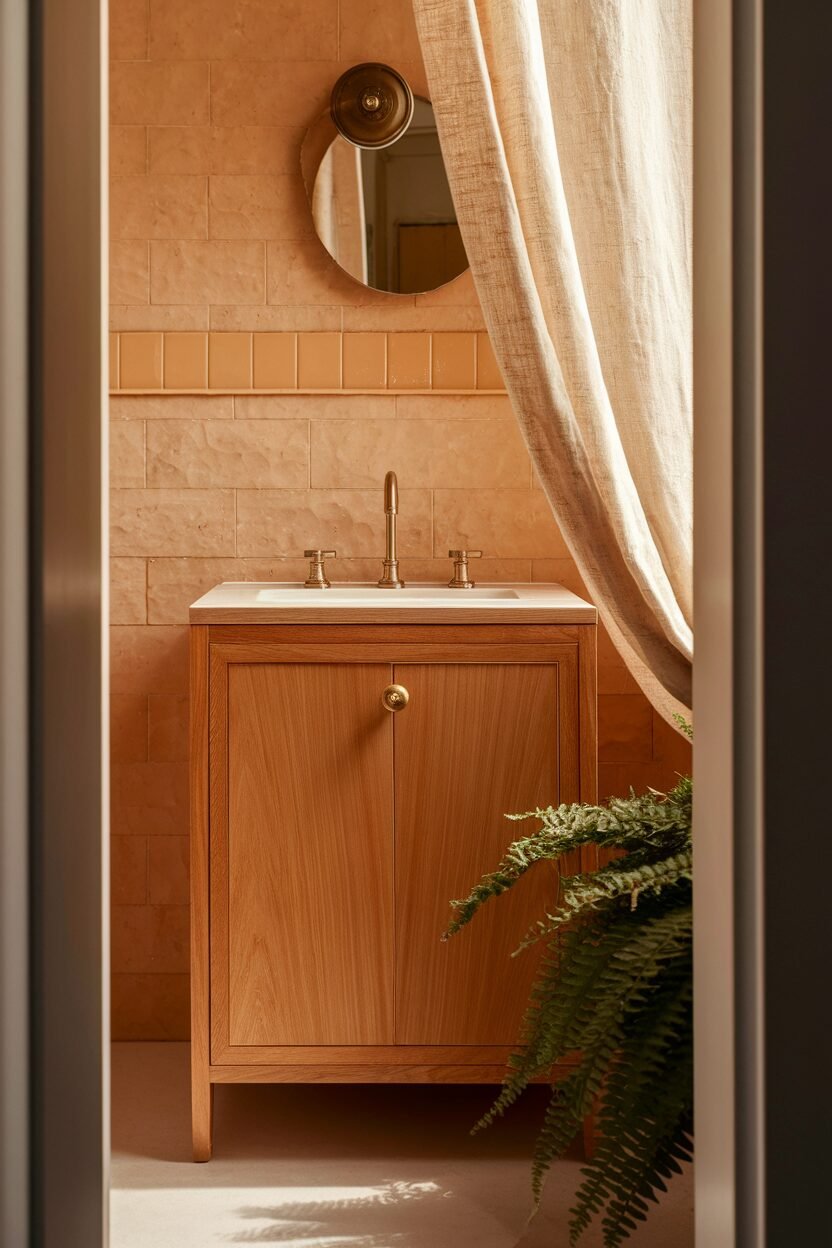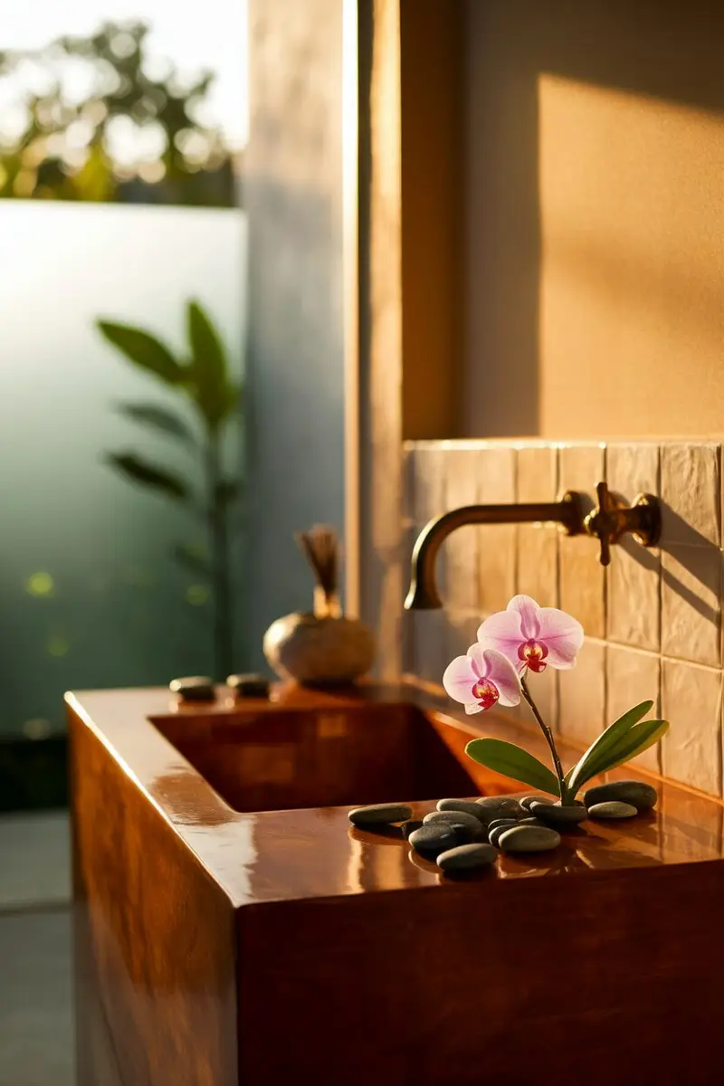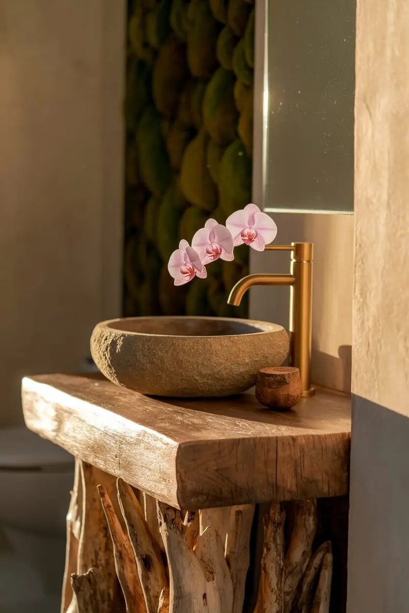 Personalize it with plants that purify the air. It’s a lovely way to enhance the natural vibe of your eco-friendly bathroom!