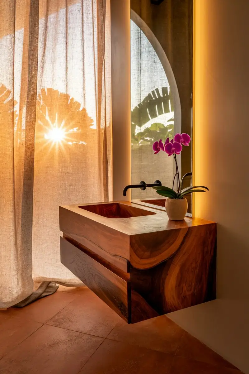 Look for designs that incorporate metal legs and wooden surfaces for a striking contrast. It’s a unique choice that stands out in a small bathroom.