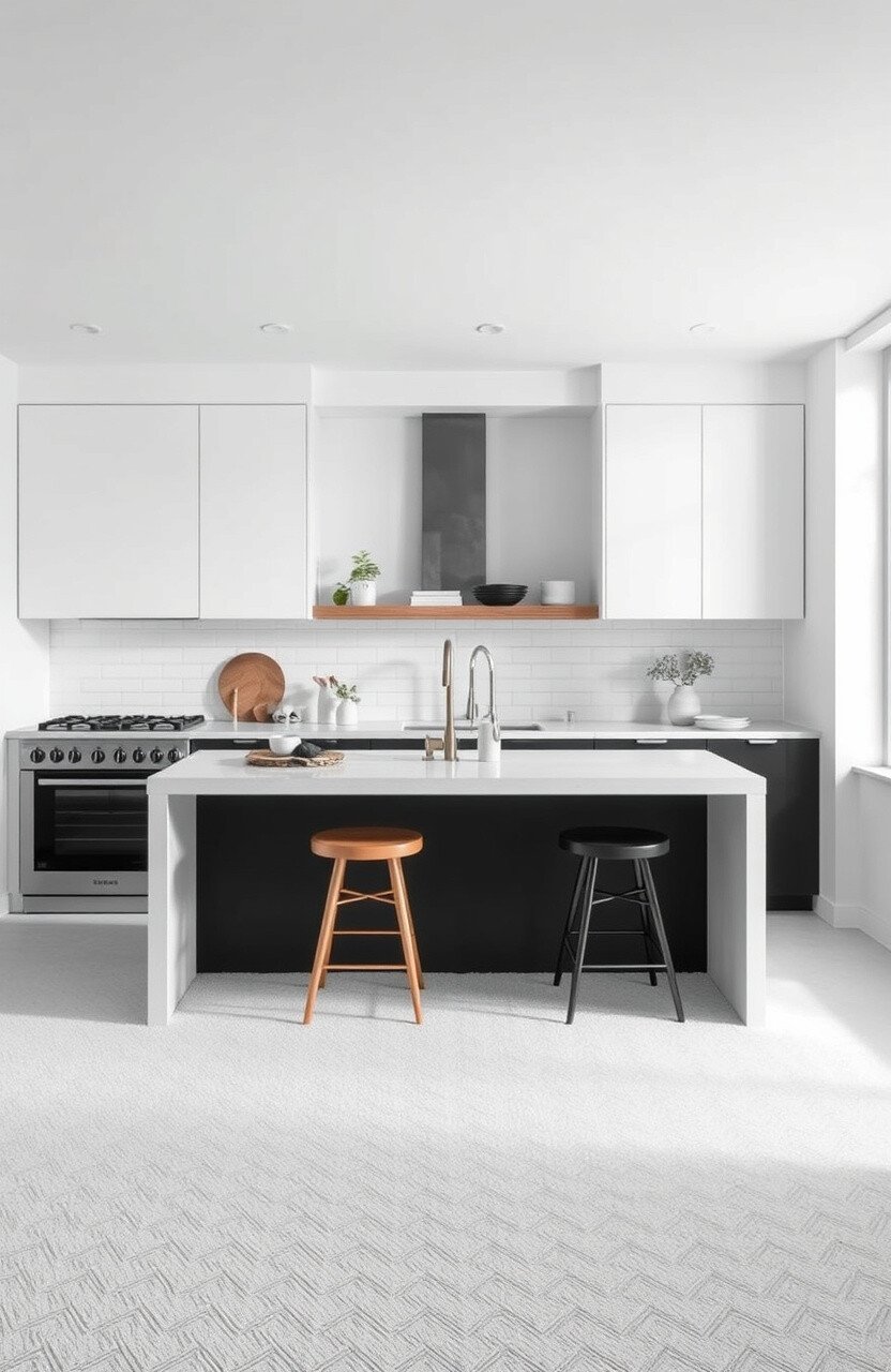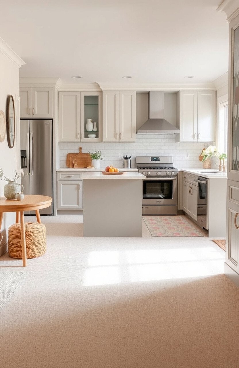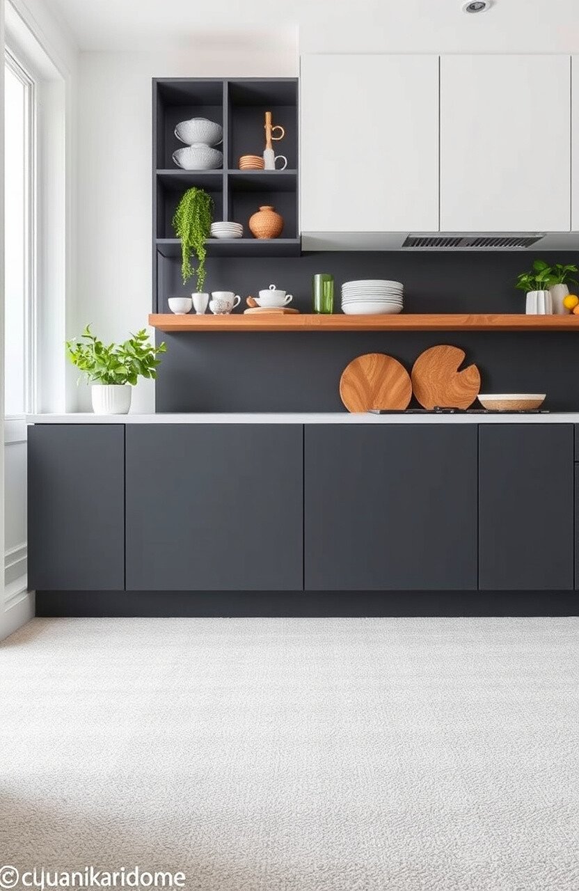Consider using monochrome carpets with different textures. This can add depth to your kitchen’s design.