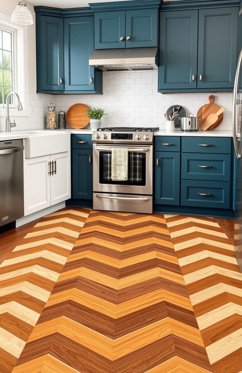 Bold colors can make your kitchen pop. It’s like adding a splash of happiness to your floor.