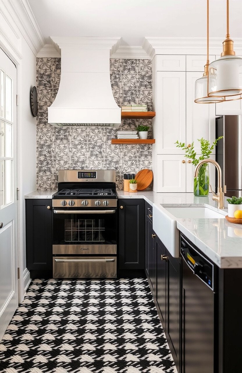 Black and white carpets can create a timeless look. It’s like a classic movie scene in your kitchen.