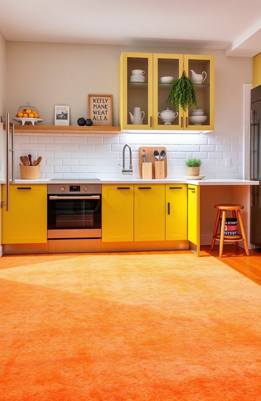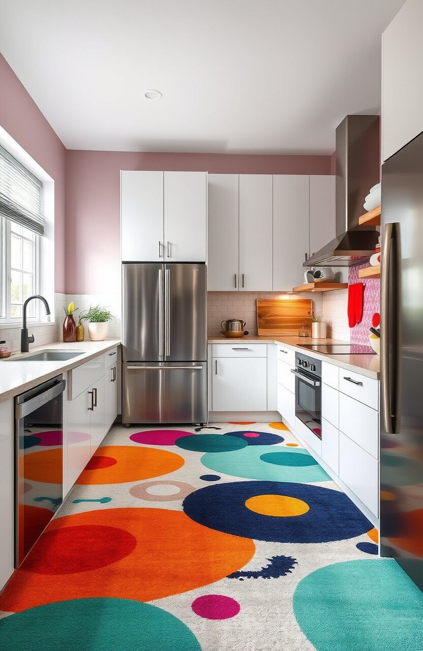 Consider using graffiti carpets to add a creative touch. They can make your kitchen feel more dynamic.