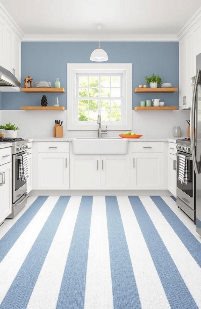 Consider using stripes in blue and white or other nautical colors. This can add a fresh touch to your kitchen.