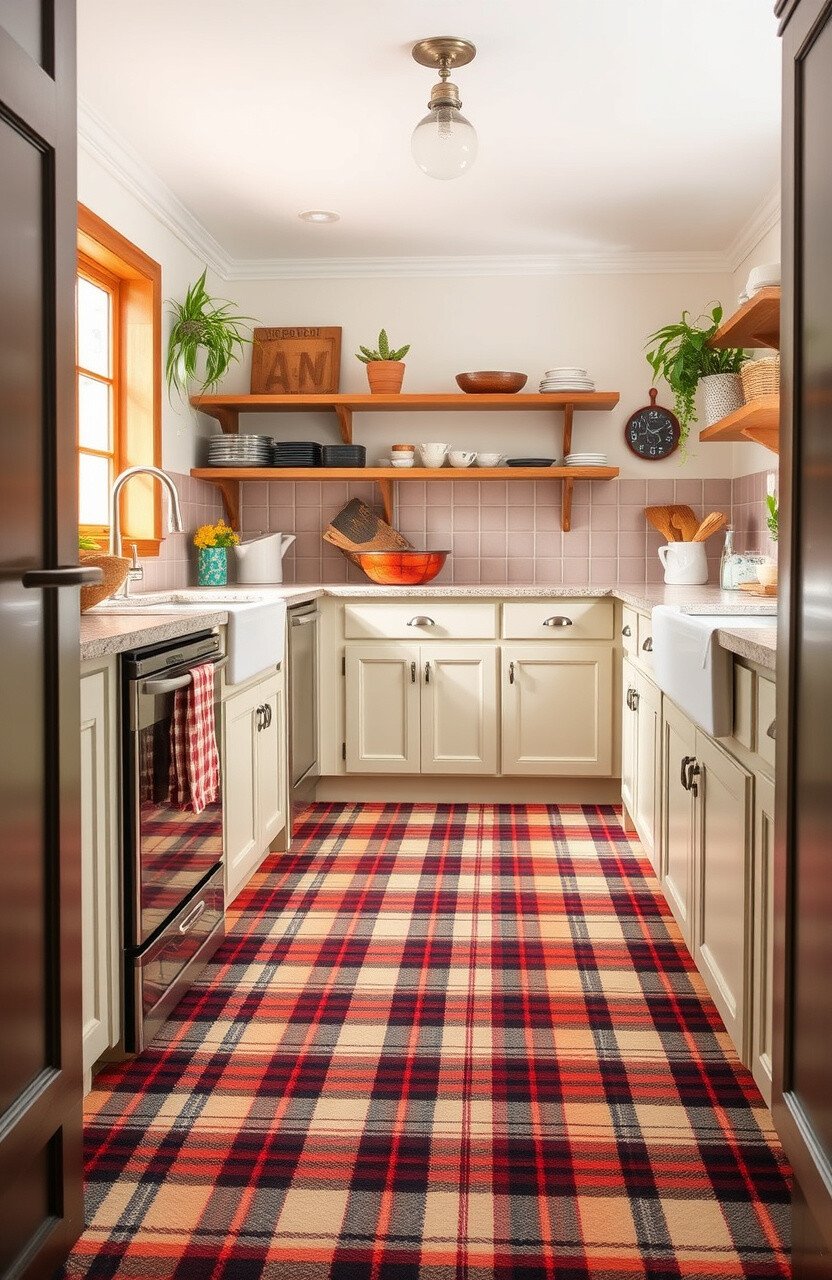 Plaid carpets are often affordable. They’re an easy way to add character to your kitchen.